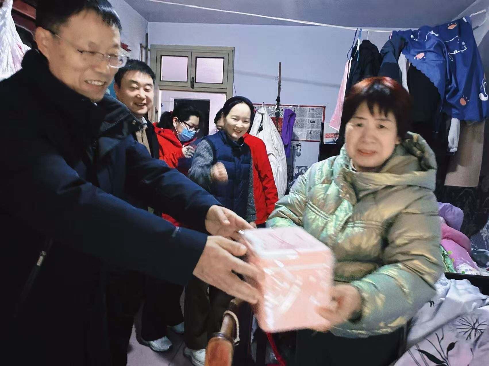 来到老人家中,王洪亮详细询问老人日常生活起居、身体状况和医疗需求,叮嘱家属要悉心照料好老人,并提前为老人送上春节的诚挚问候,让老人感受到如同家人般温暖关怀。
